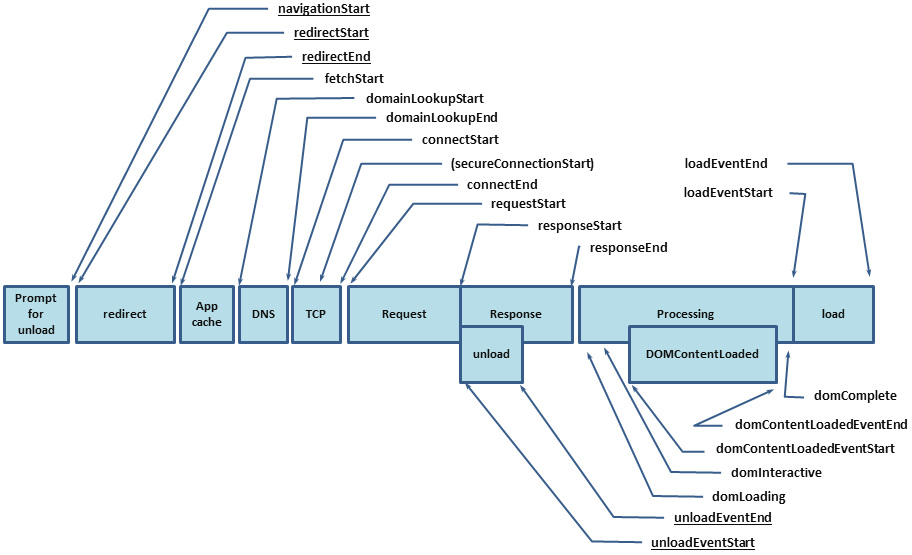 | redirectTime | Page redirection time | redirectEnd - redirectStart | If the current document and the document that is redirected to are not from the same origin, set redirectStart, redirectEnd to 0 |
